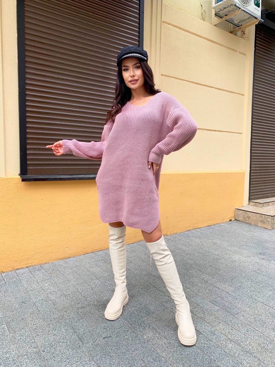 В'язана сукня-туніка пудрового кольору 29940