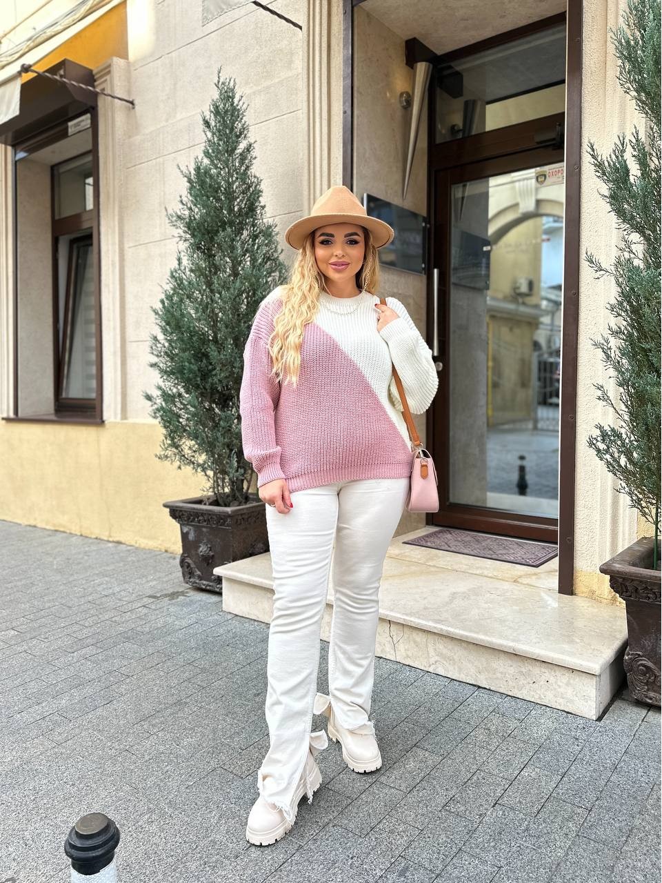 В'язаний жіночий светр рожевого кольору 29899