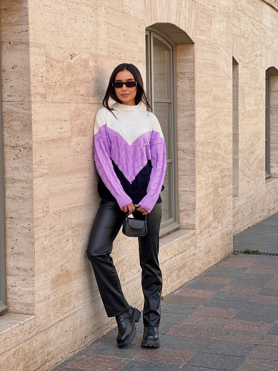 В'язаний жіночий светр з горлом бузкового кольору 29891
