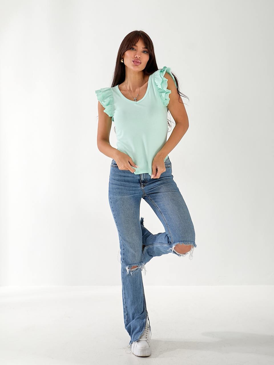 Жіноча бавовняна футболка з рюшами м'ятного кольору 33269