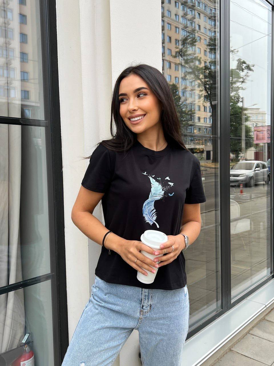 Жіноча футболка - це один із базових елементів жіночого гардеробу вона може як підкреслити, так і доповнити, або урізноманітнити ваш образ. Футболка виконана з якісного матеріалу, який приємний до тіла і стильно виглядає. Футболка це один із незамінних предметів одягу на літо, однак, її можна носити цілий рік так, як вона є однією з найбільш універсальних та необхідних предметів одягу в жіночому гардеробі.