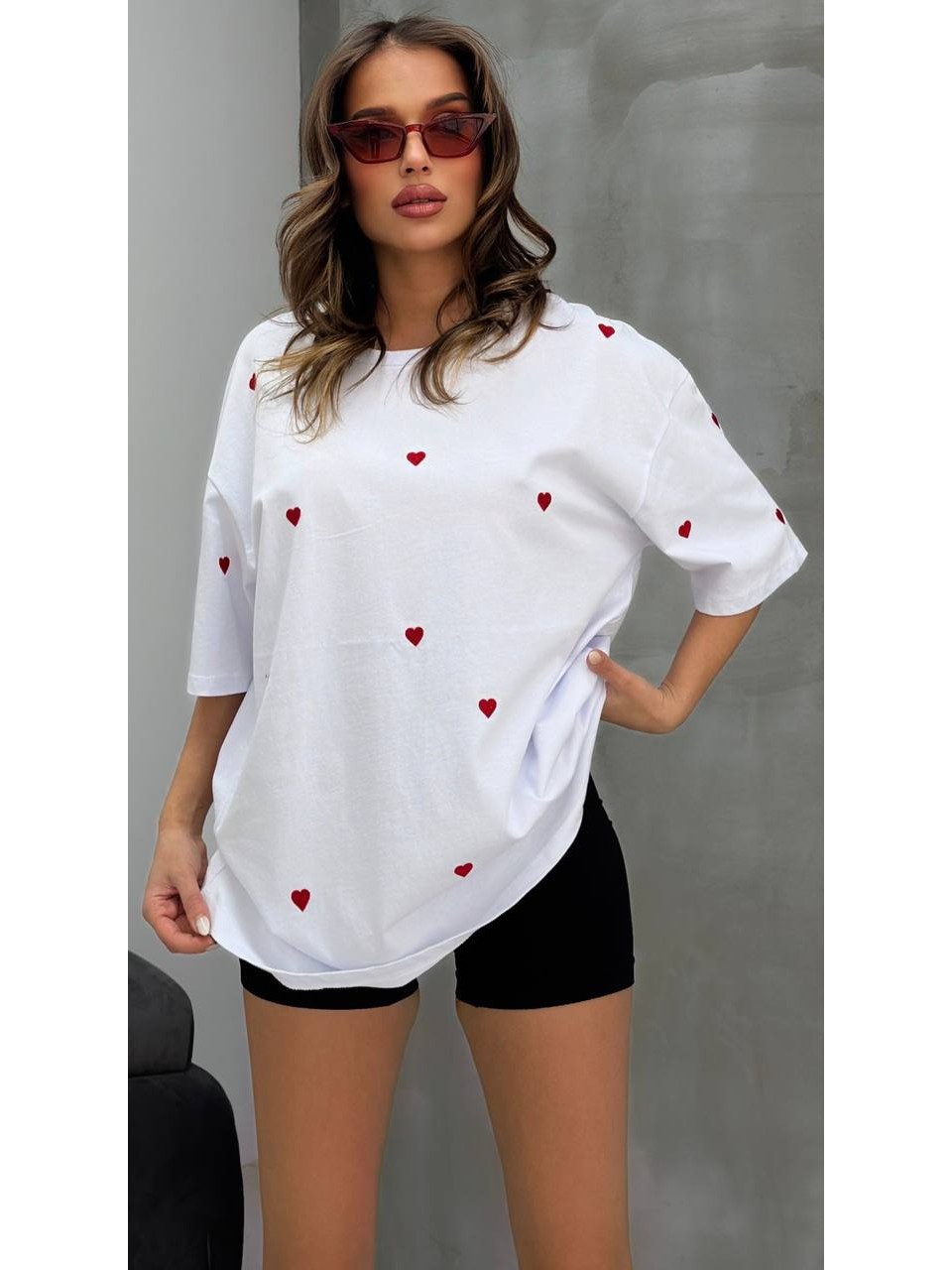 Жіноча футболка з серцями молочного кольору 32680