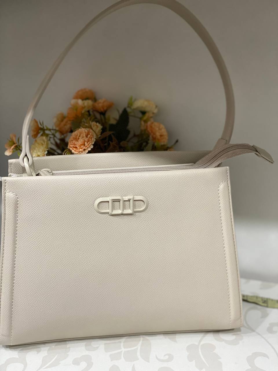 Жіноча класична сумка з еко-шкіри бежевого кольору 32192