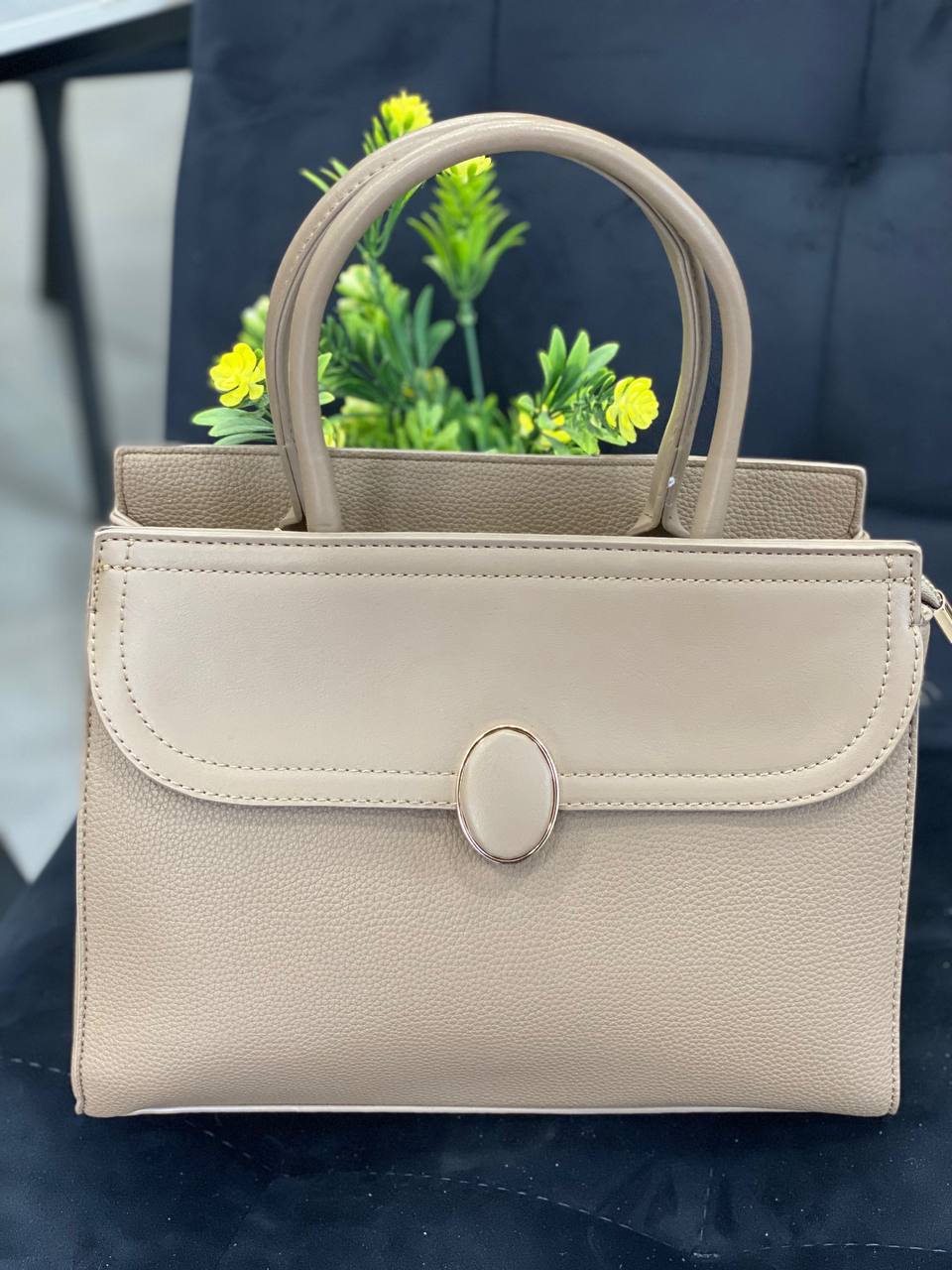 Жіноча класична сумка з еко-шкіри бежевого кольору 32238