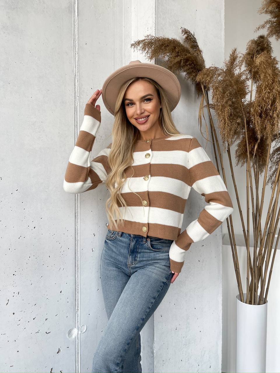 Жіноча кофта на гудзиках у кавову смужку білого кольору 29587