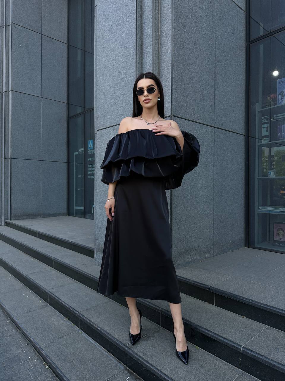 Жіноча шовкова спідниця міді чорного кольору 33191