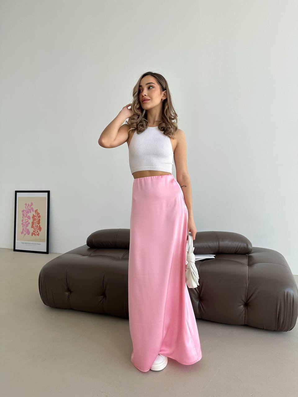 Жіноча спідниця шовкова максі рожевого кольору 33286