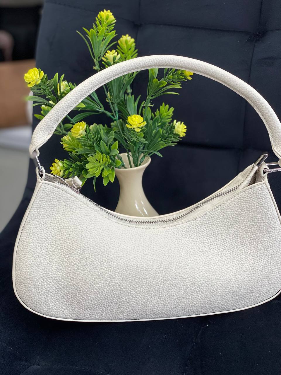 Жіноча сумка-багет з пористої еко-шкіри бiлого кольору 32387