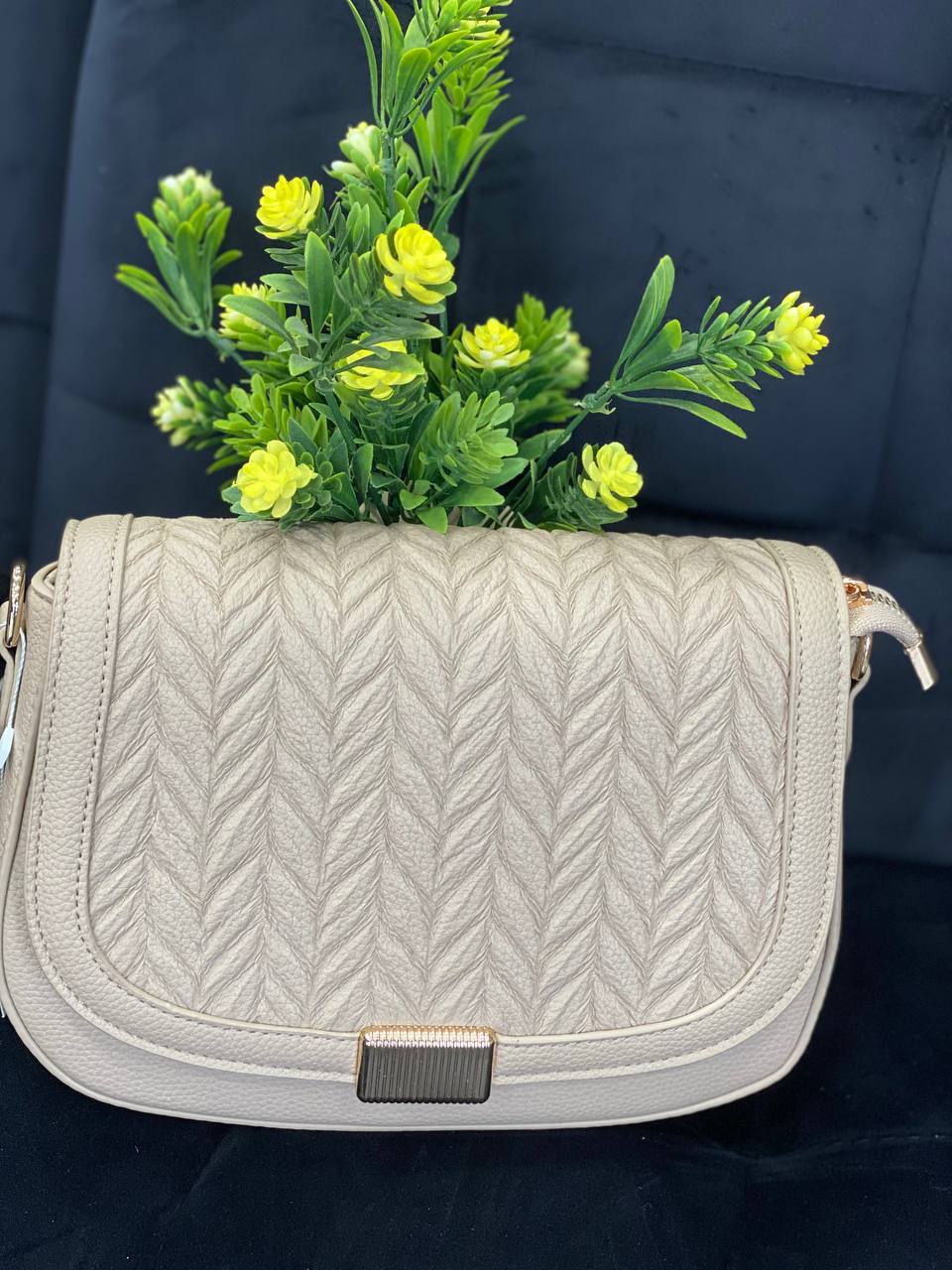 Жіноча сумка крос-боді на кнопцi з еко-шкіри бежевого кольору 32354
