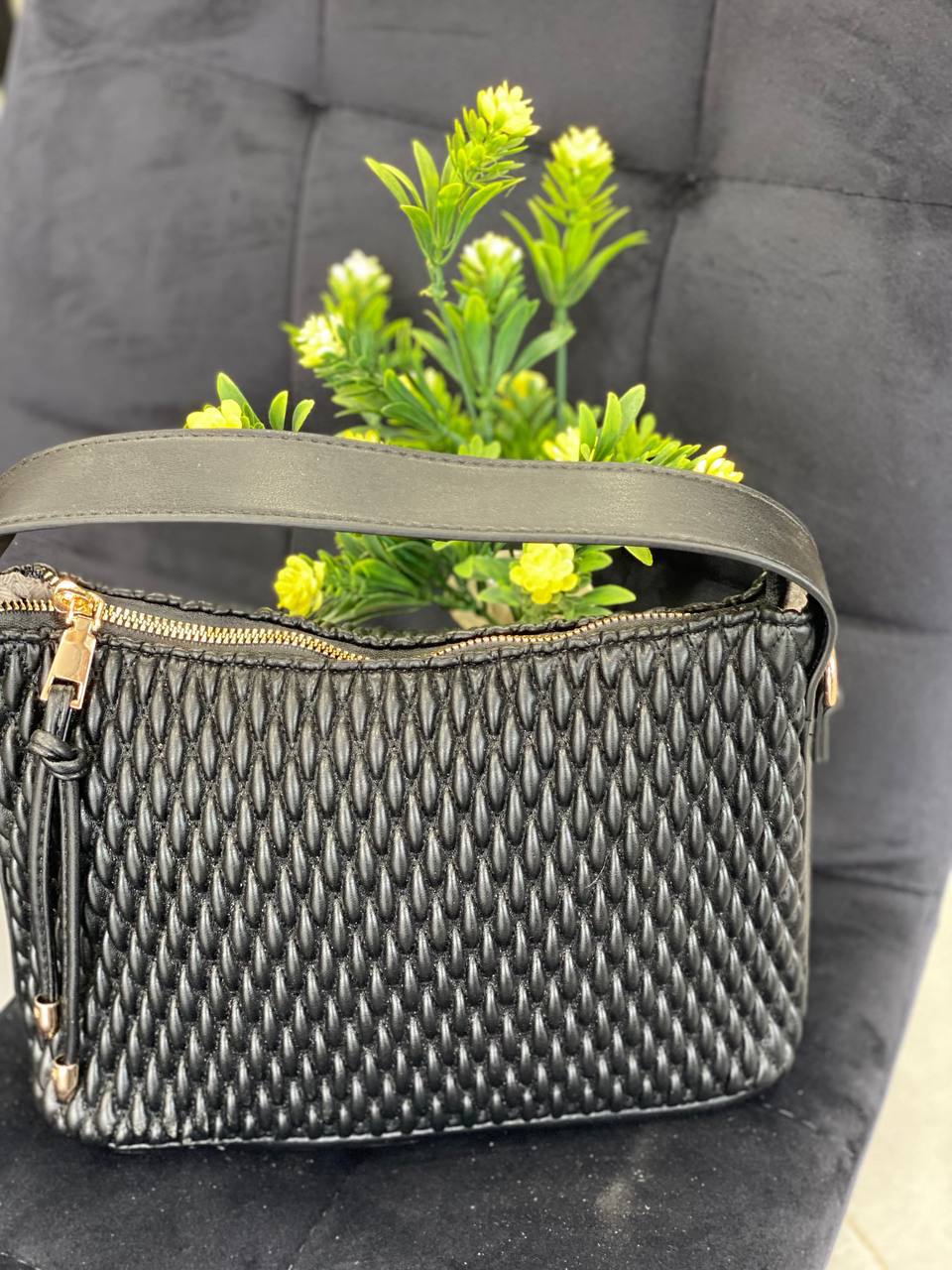 Жіноча сумка на плече із жатої еко-шкіри чорного кольору 32262