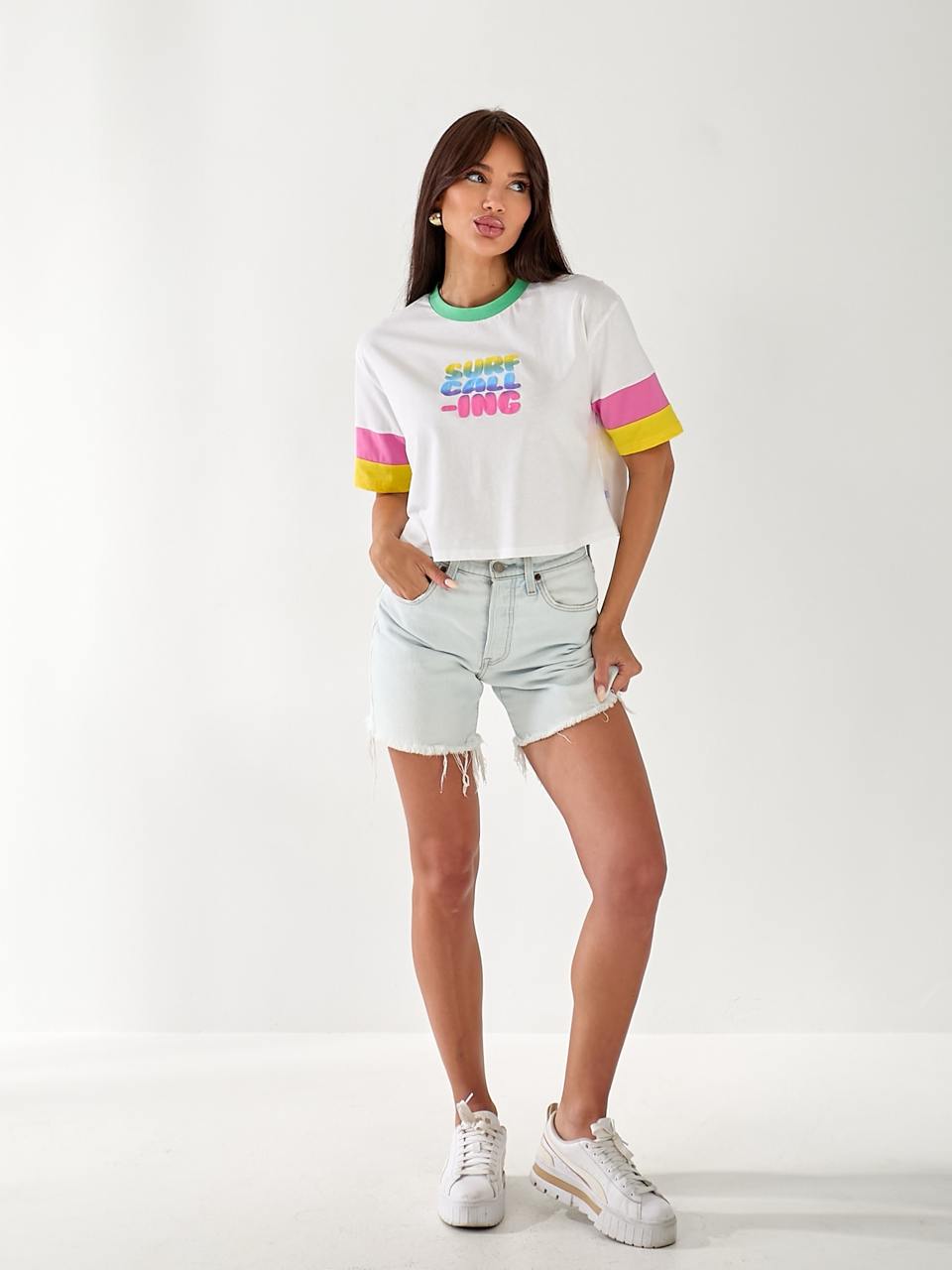 Жіноча футболка - це один із базових елементів жіночого гардеробу вона може як підкреслити, так і доповнити, або урізноманітнити ваш образ. Футболка виконана з якісного матеріалу, який приємний до тіла і стильно виглядає. Футболка це один із незамінних предметів одягу на літо, однак, її можна носити цілий рік так, як вона є однією з найбільш універсальних та необхідних предметів одягу в жіночому гардеробі.