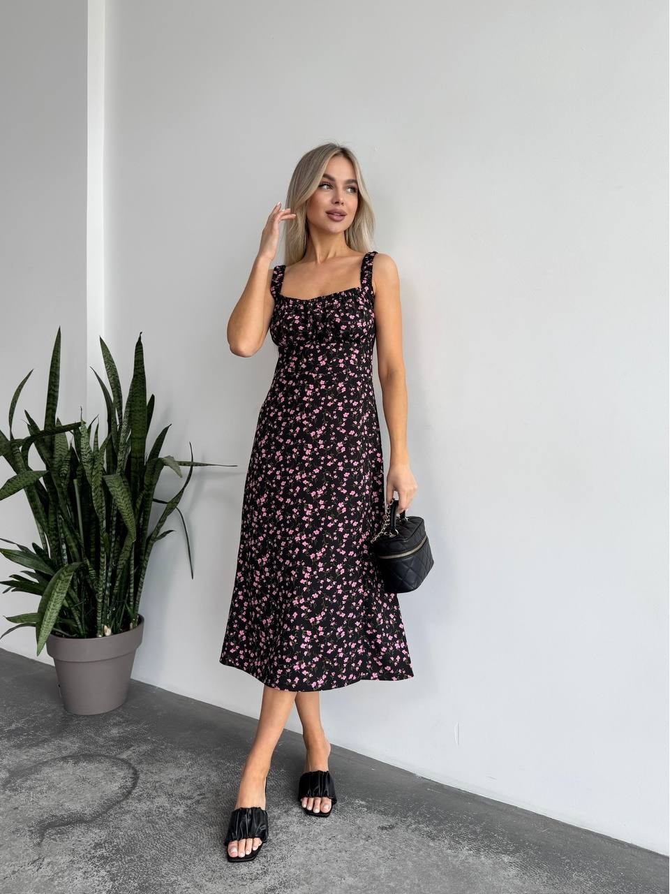 Жіноче літня сукня в квітку чорного кольору 33496