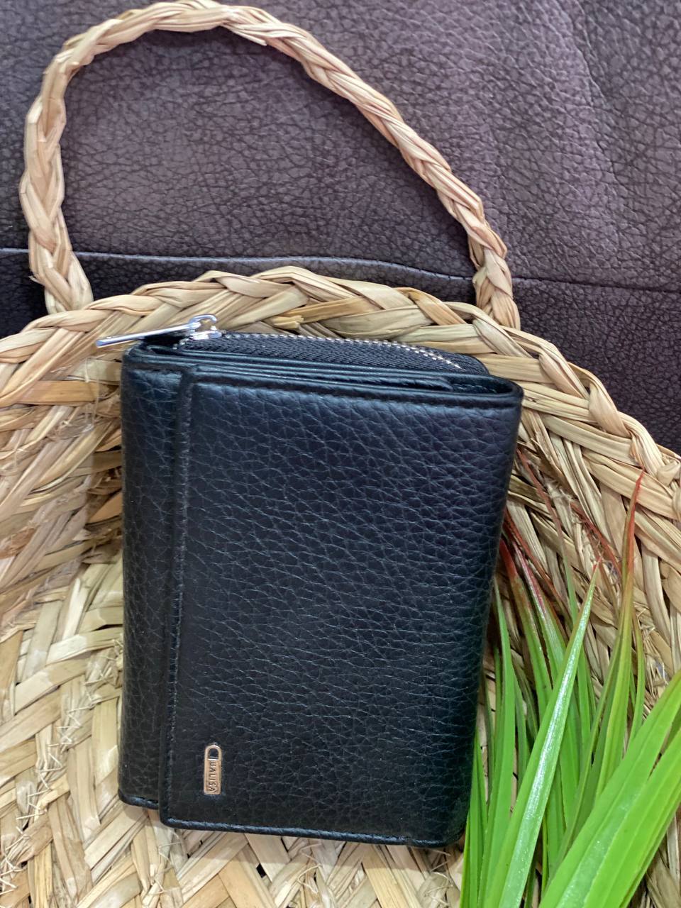 Жіночий компактний гаманець із пористої еко-шкіри чорного кольору 32417