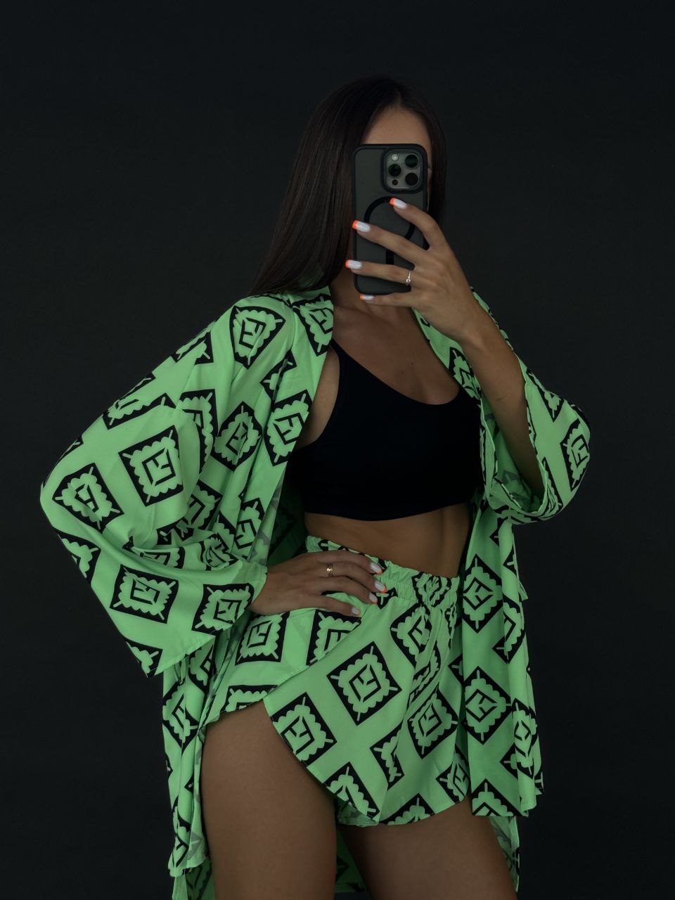 Жіночий костюм 2-ка (шорти+кімоно) свiтло-зеленого кольору 28531