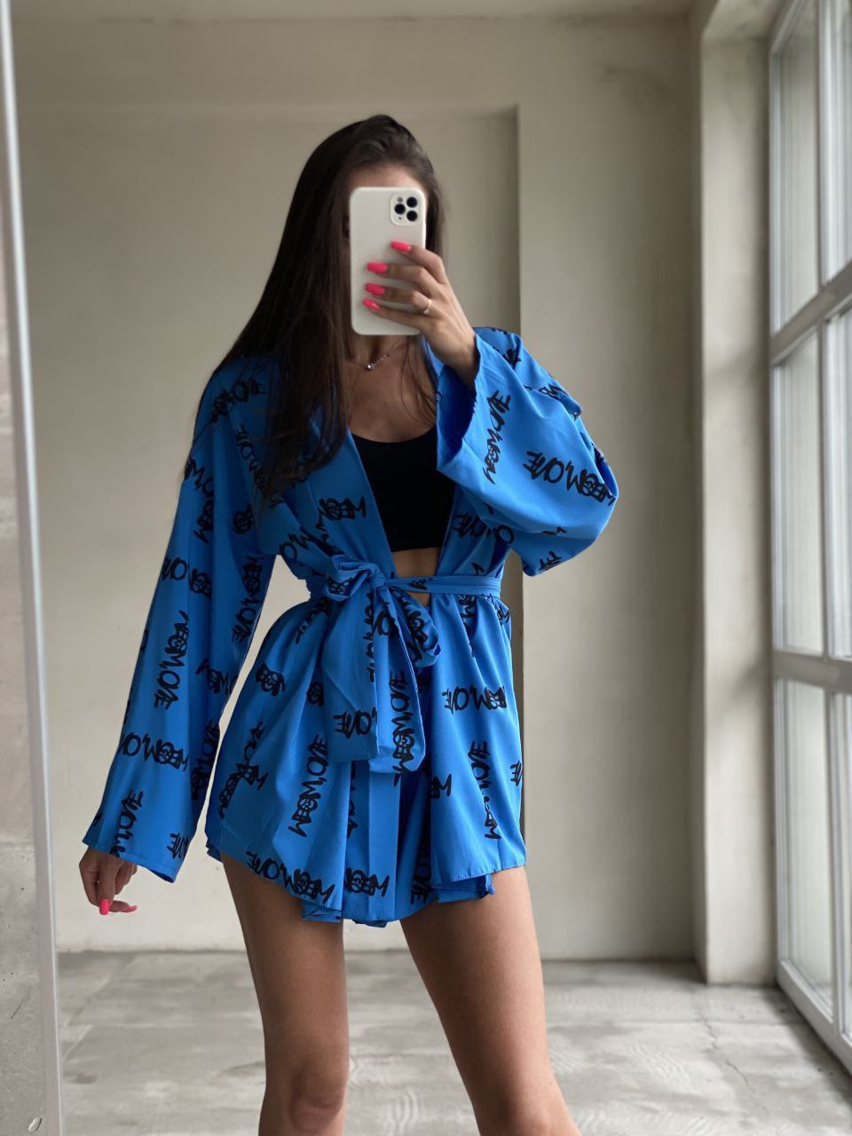 Жіночий костюм (кімоно+шорти) блакитного кольору 27223