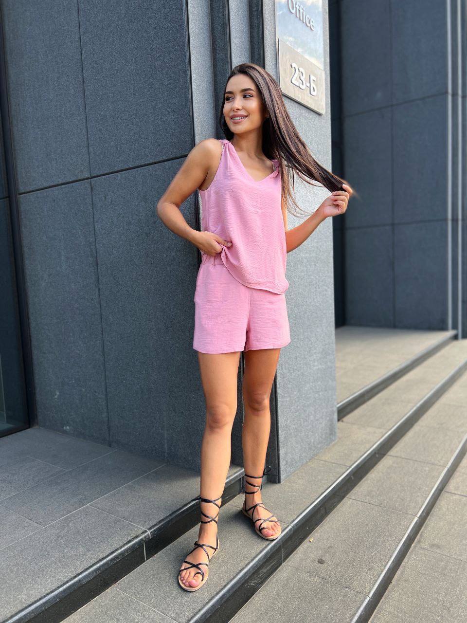 Жіночий літній костюм (шорти+майка) рожевого кольору 33343