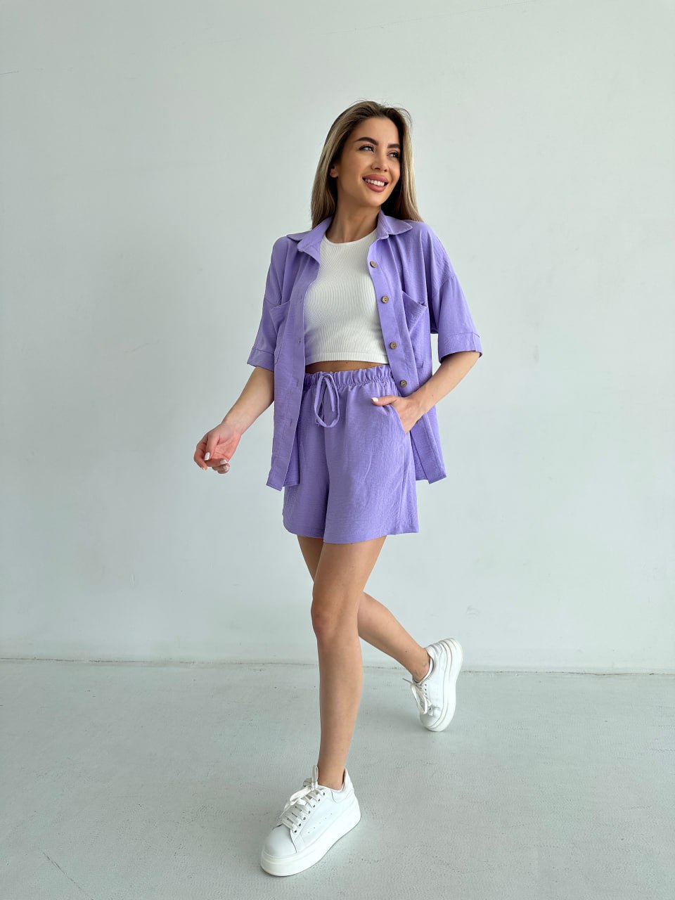 Жіночий літній костюм сорочка+шорти бузкового кольору 33109