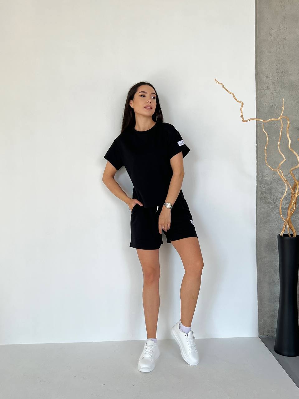 Жіночий літній костюм із шортами чорного кольору 33098