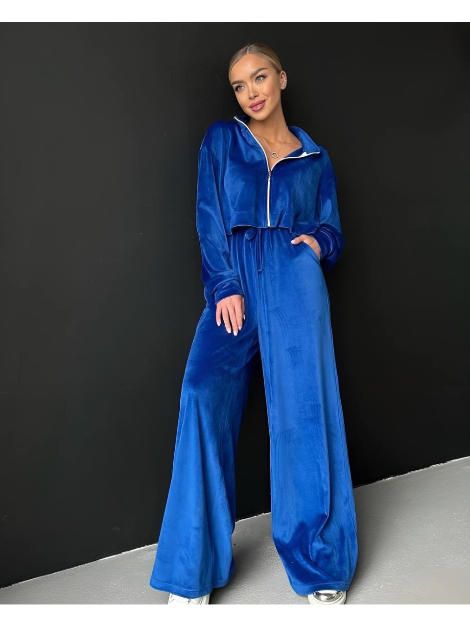 Жіночий легкий костюм на блискавці синього кольору 33114