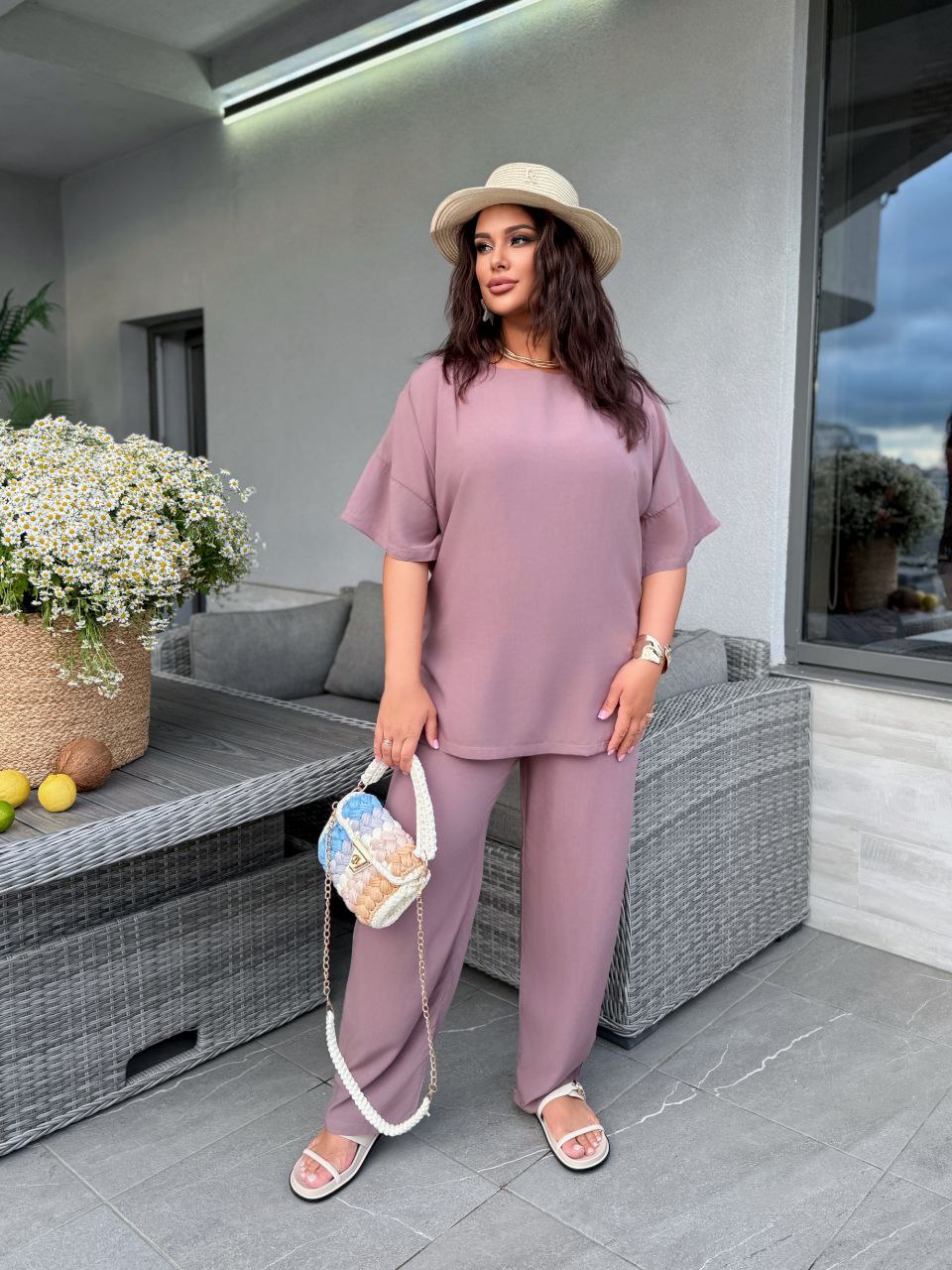 Жіночий легкий прогулянковий костюм пудрового кольору 33405