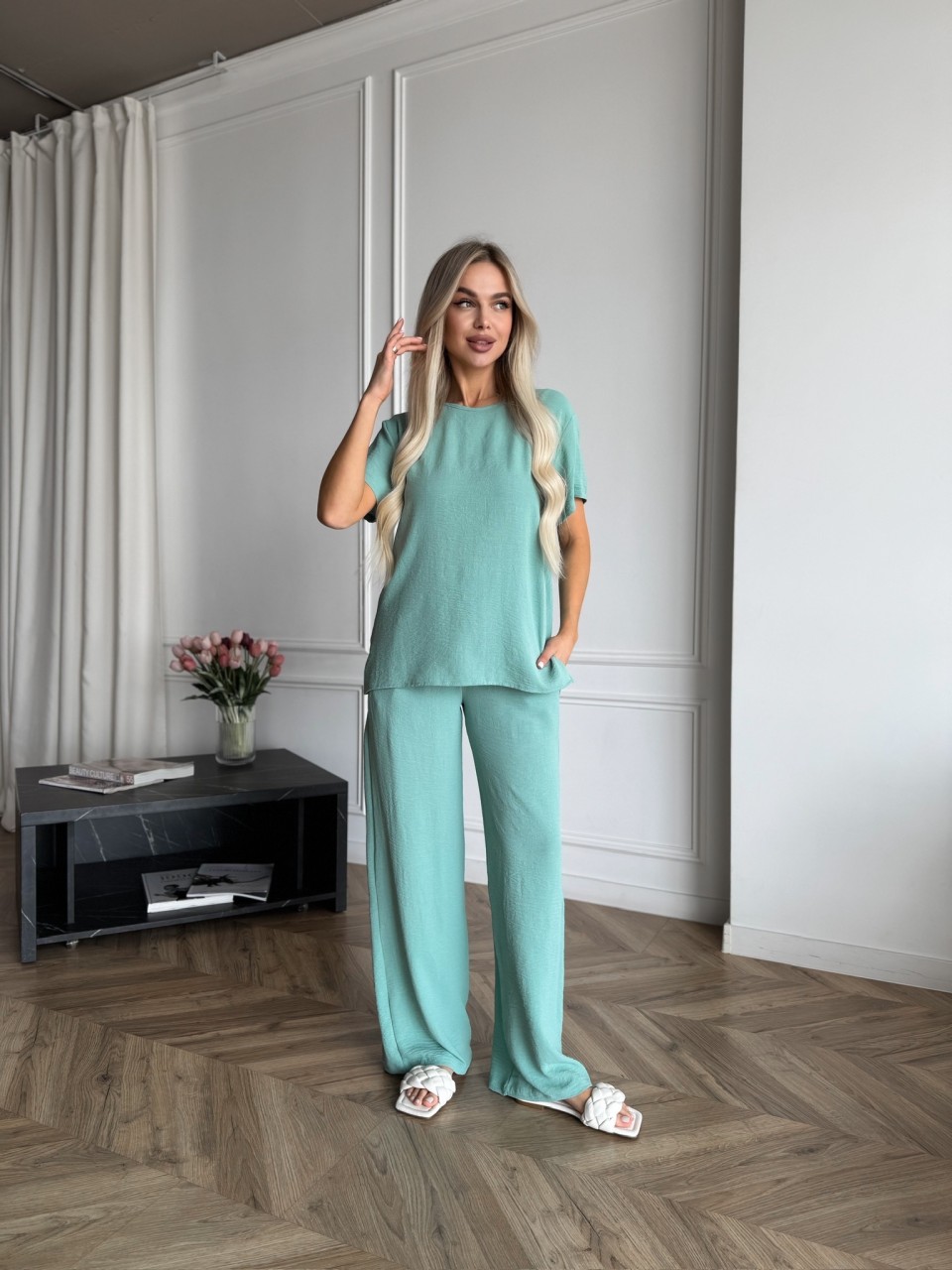 Жіночий легкий прогулянковий костюм м'ятного кольору 33392