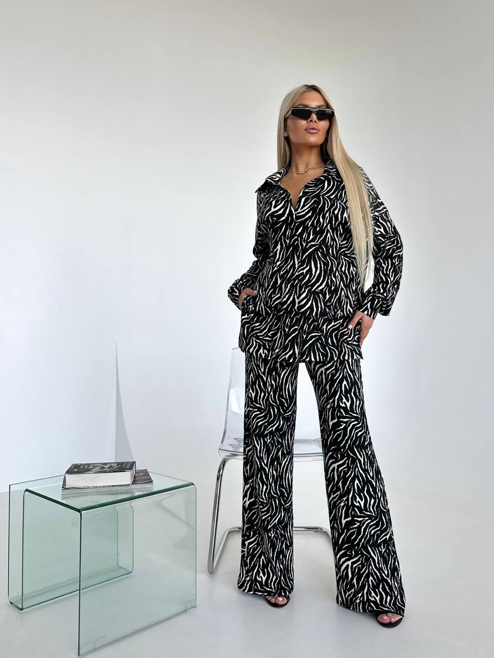 Жіночий прогулянковий костюм кольору чорної зебри 27391