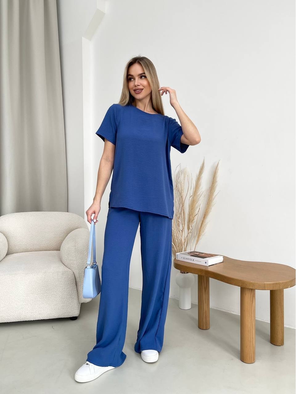 Жіночий прогулянковий костюм синього кольору 32035