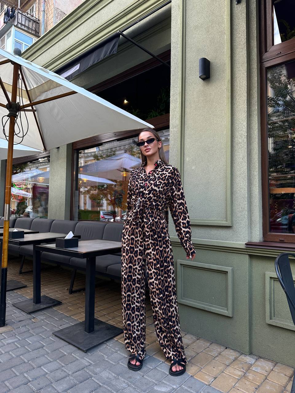 Жіночий прогулянковий костюм у леопардовому стилі коричневого кольору 31376