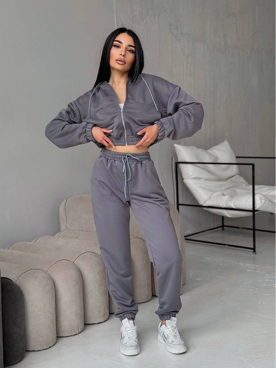Жіночий спортивний костюм на змійці графiтового кольору 32697