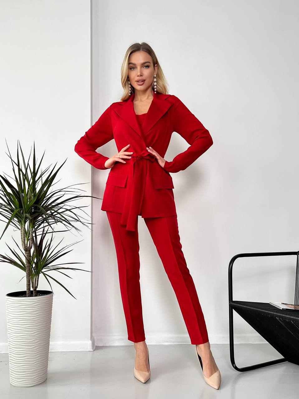 Жіночий стильний костюм-трійка червоного кольору 25773