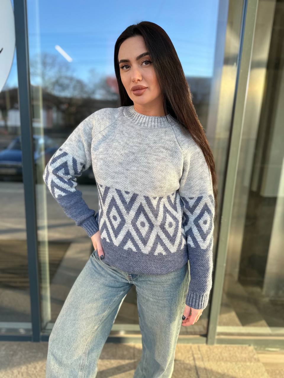 Жіночий светр із малюнком синього кольору 30458