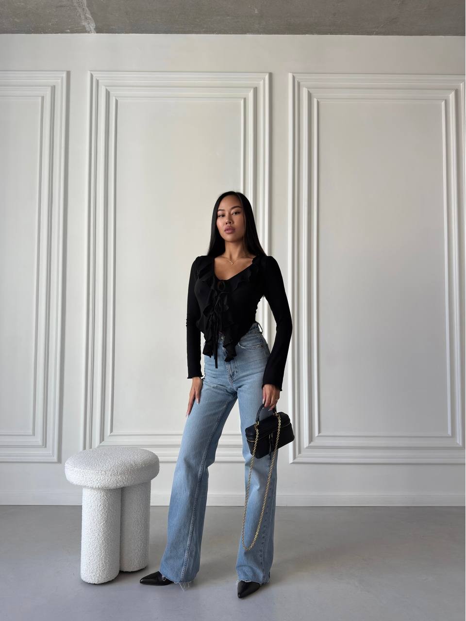 Жіночий топ із воланами на зав'язках чорного кольору 31660