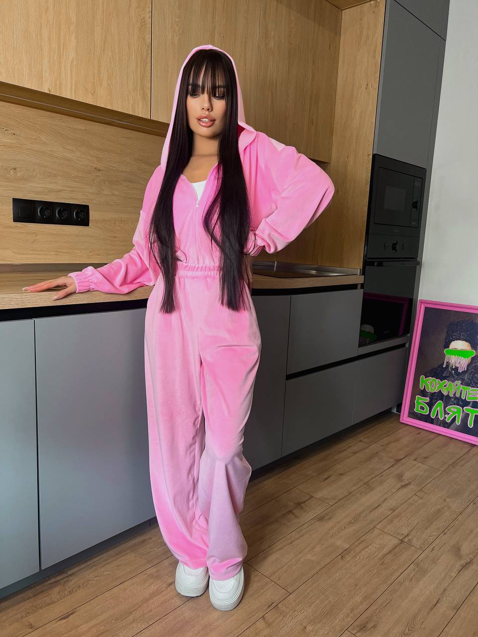 Жіночий велюровий комбінезон рожевого кольору 31142