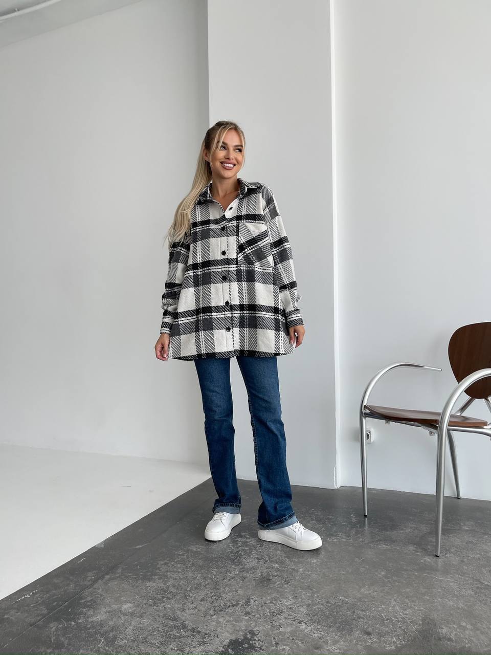 Жіноча байкова сорочка в клітинку чорного кольору 29293