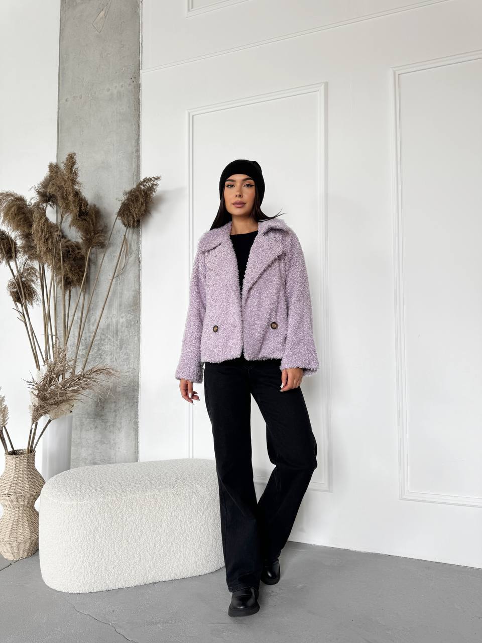 Жіноча коротка шуба з букле лiлового кольору 29809