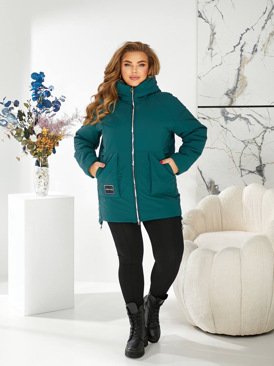 Жіноча зимова куртка з капюшоном смарагдового кольору 29757
