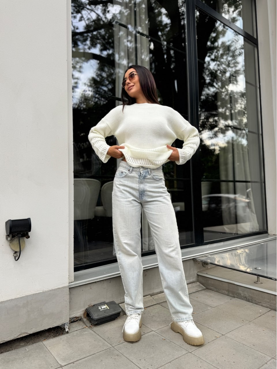 Жіночий базовий светр молочного кольору 30182