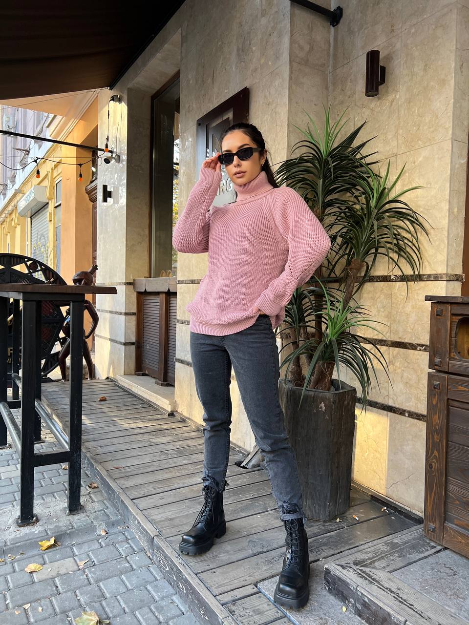 Жіночий однотонний светр із горловиною рожевого кольору 30263