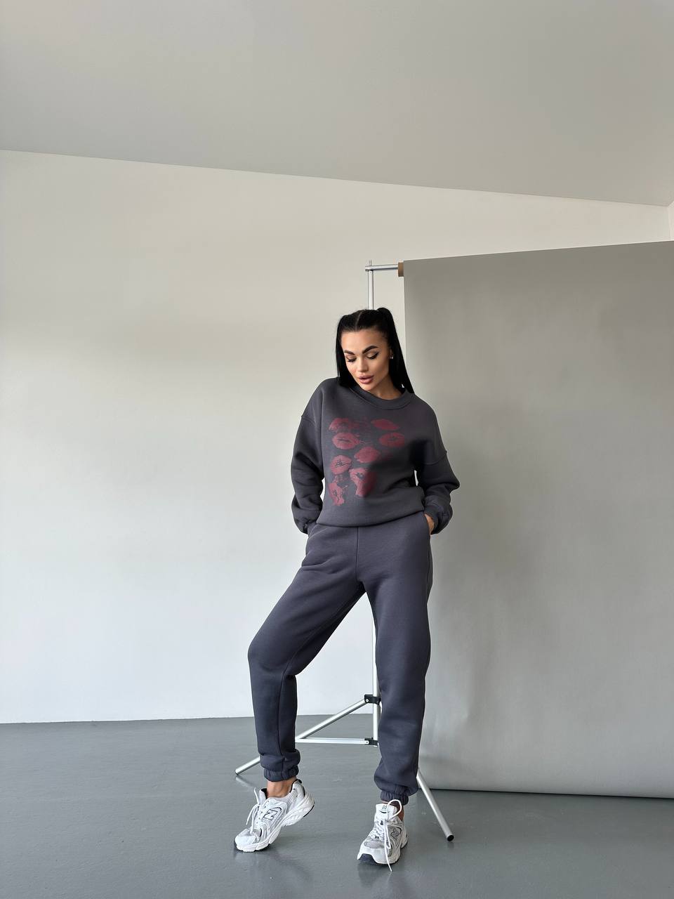 Жіночий світшот на флісі з принтом сірого кольору 29874