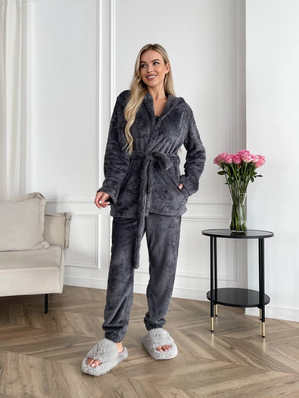 Жіночий теплий костюм 3-ка для дому графітового кольору 29818