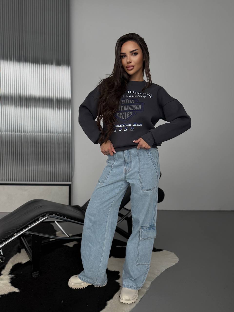 Жіночий теплий світшот графiтового кольору 30143