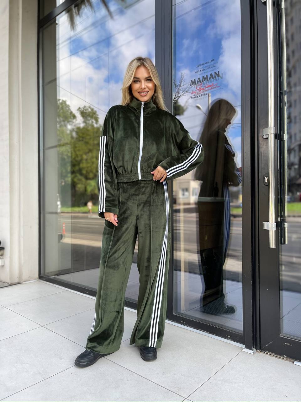 Жіночий велюровий костюм на змійці кольору хакi 30317