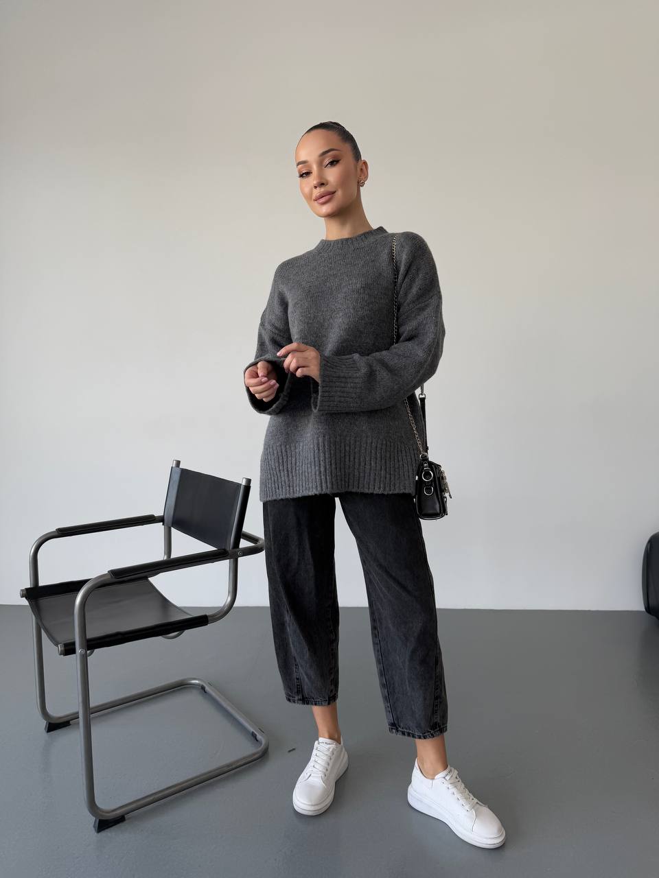 Жіночий базовий светр графiтового кольору 34346