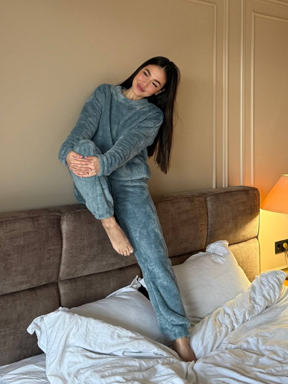 Жіночий костюм виготовлений з високоякісного матеріалу, який дуже приємний до тіла. Теплий костюм ідеально підходить для вечірнього відпочинку вдома, перегляду фільмів чи читання книг. Наш теплий домашній костюм – це не просто одяг для дому, це ваш супутник у холодну пору року. Він створений для того, щоб подарувати вам комфорт та забезпечити теплоту та затишок під час вечірнього відпочинку вдома. Костюм виготовлений із високоякісного матеріалу. Він призначений для тих, хто цінує зручність та стиль у будь-який момент. Ви можете носити його, розслабившись перед телевізором, готуючи обід, або просто відпочиваючи на дивані. Він ідеально підходить для довгих зимових вечорів та допомагає створити атмосферу тепла та комфорту у вашому будинку.