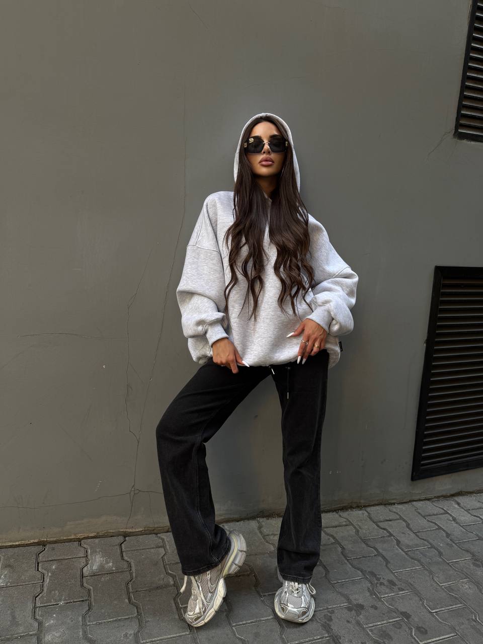 Жіночий худі з капюшоном на флiсi сірого кольору 34641