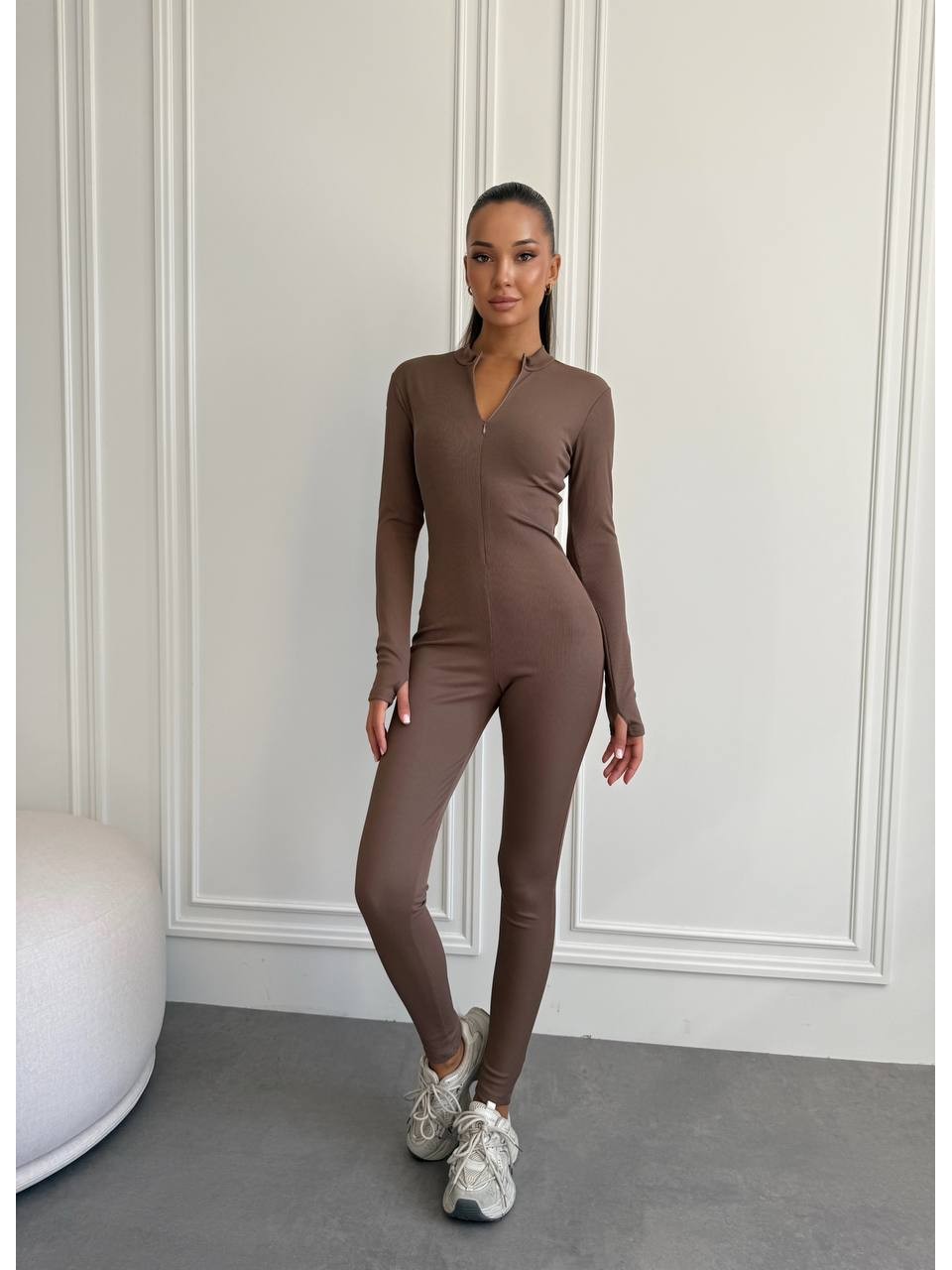 Жіночий комбінезон в рубчик кавового кольору 34703