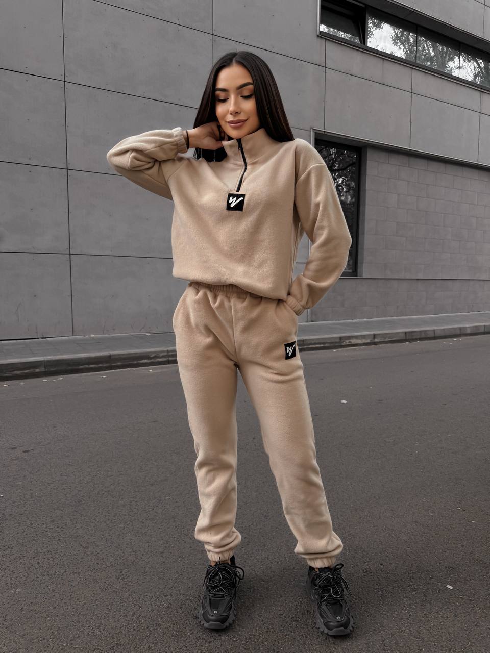 Жіночий костюм флісовий бежевого кольору 35079