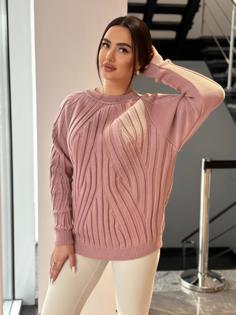 Жіночий светр з фактурною вʼязкою пудрового кольору 34355