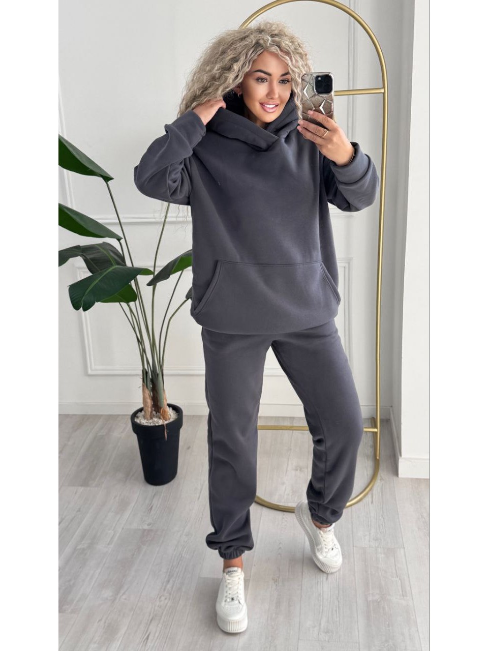 Жіночий телий костюм з капюшоном графiтового кольору 34964