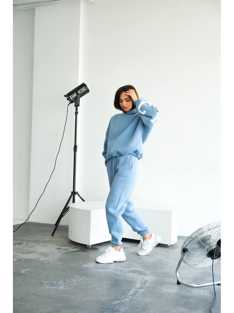 Жіночий теплий костюм з написом блакитного кольору 34212